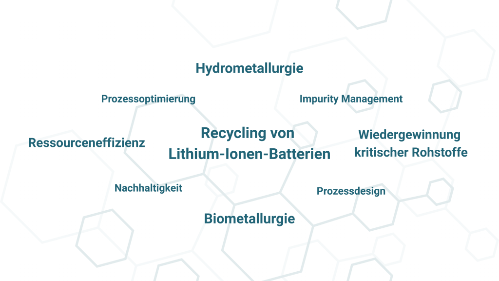 In meiner wissenschaftlichen Arbeit verbinde ich hydrometallurgische Grundlagen mit innovativen Ansätzen. Der Fokus liegt auf dem nachhaltigen Recycling von Lithium-Ionen-Batterien, der ressourceneffizienten Rückgewinnung kritischer Metalle sowie der Entwicklung CO₂-armer Technologien für eine zukunftsfähige Kreislaufwirtschaft.
